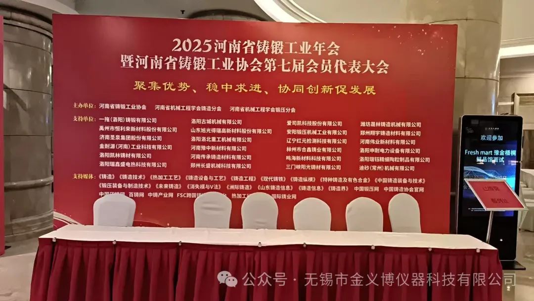2025年4月21日,金義博儀器參加了在鄭州光華大酒店舉行的2025河南省鑄鍛工業(yè)年會暨河南省鑄鍛工業(yè)協(xié)會第七屆會員代表大會。